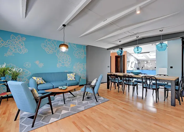 El apartamento de 90 m^2 está situado en el distrito Sopot Centrum, a un par de minutos en coche de la calle Bohaterow Monte Cassino. Puedes llegar a la Opera Leśna en 5 minutos en coche, mientras que el aeropuerto Gdańsk-Lech Wałęsa está a 25 km.